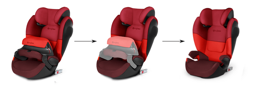 Como Grupo 1, Pallas M-Fix SL cuenta con un cojín de seguridad ajustable. Para los niños de 15 kg (3 años, aprox) la silla se puede convertir fácilmente en una Solución M-Fix SL y también se puede utilizar en coches sin ISOFIX gracias a los conectores flexibles.
