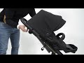 • La barra de transporte del capazo se coloca a lo largo de la capota, para facilitar el transporte y la fijación a la estructura del cochecito.